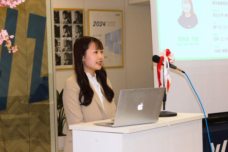 新入社員皆さんへ、応援の気持ちを込めて先輩社員からスピーチを行います。入社後のキャリアステップ、仕事におけるモットー、成長の秘訣、Wizの魅力、入社後に悩んだこと、どうやって壁を乗り越えたか、など、自身の経験を交えた激励のメッセージが送られました。
