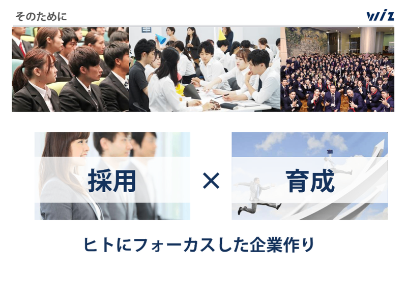 私は採用を非常に重要な経営戦略だと考え、また、人材こそが競争力、その競争力こそがWizの未来を作っていくと考えています。12年かけて、採用と育成の骨子ができ始めてきました。人が育ち、事業が伸び、Wizが前進する、そういう未来を感じることができてるので冒頭のムービー内で“これからのWizは面白い”と表現しました。