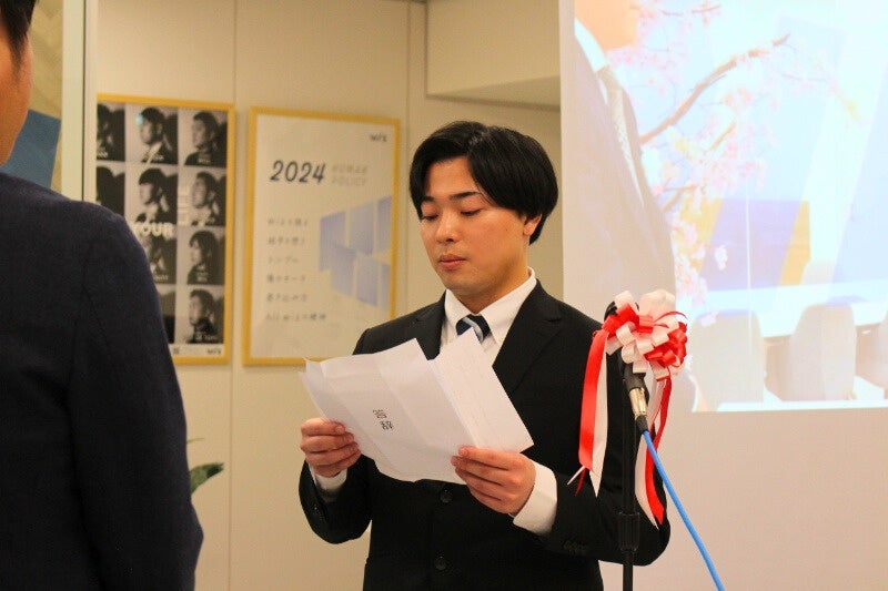 最後に新入社員を代表してトウハラさんから答辞が読み上げられました。