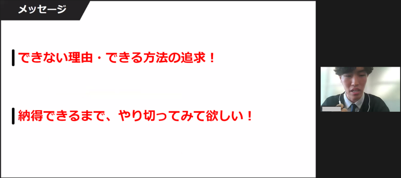 インターン期間中に、特に活躍したメンバーを称える“インターンランキング”の表彰に移ります。また、今年からは“内定者目標部門”、“リファーラル部門”、“人事特別賞” が新設されました。受賞した新入社員からは、受賞の秘訣や喜びをコメントいただきました。
