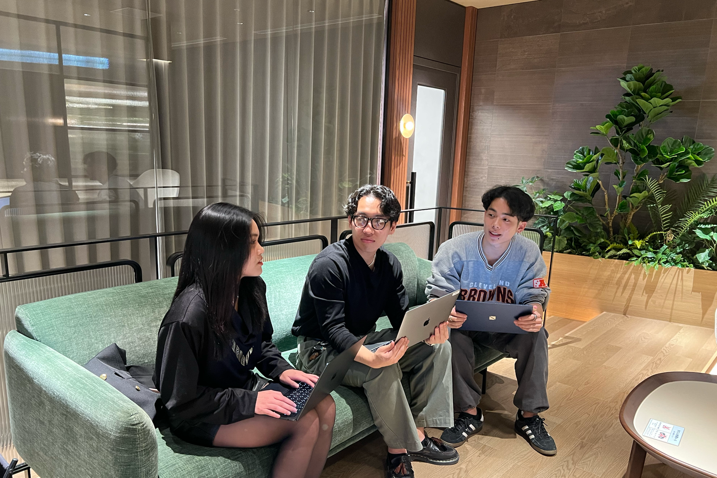 インターン生も社員ミーティングに参加し、一人のメンバーとして意見を交わす機会があります。会議でも「青木君はどう思う?」と自然に意見を聞いてもらえるので、常に自分の考えを持っておく必要があります。ある意味、「学生だから」という甘えが通じないという捉え方もできますが、その分思考やスピード感を間近で学べるのが贅沢な環境だなと感じています。