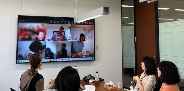ちなみに、こちらは先日赤坂オフィスで行ったリモート組×出社組を交えた、ハイブリッド型のランチ会の様子です!ミルクを飲むエケチェン(赤ちゃん)が映ると、カワイイ~~~のコールが部屋全体に響き渡っていました😂