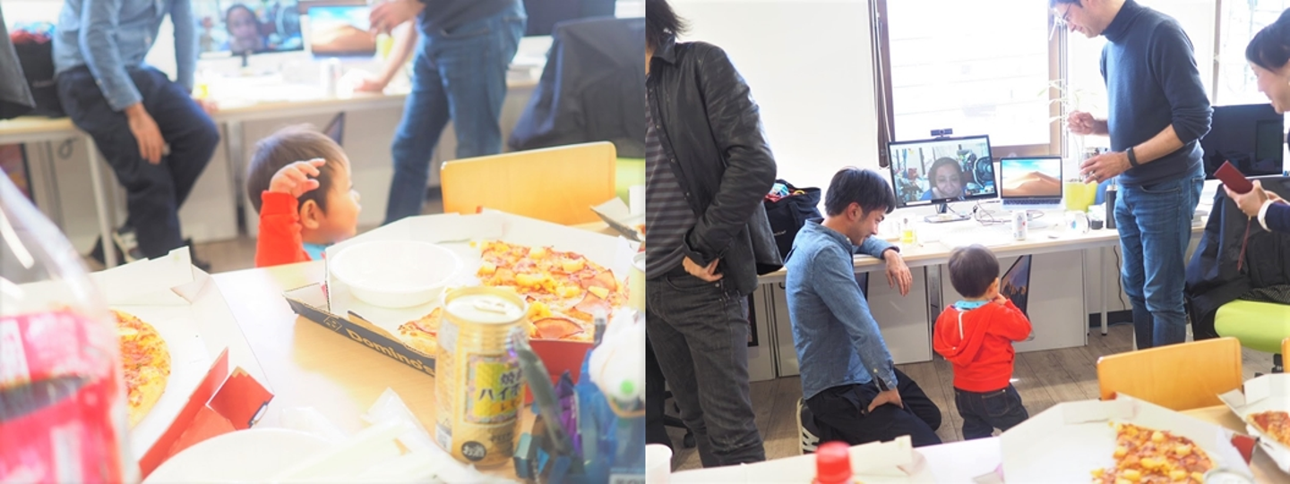 On January 8th, Hacarus held another party in honor of the new year, shinnenkai. Because it was held during lunch hours (until the end of the day, actually!), attending was convenient for everyone. The table was full of different food for everyone to eat while enjoying time talking to each other. Kenshin-san's wife had brought amazing cakes that everyone absolutely loved along with a bento box of strawberries and blueberries, which the baby of Hacarus seemed to incline towards the most.