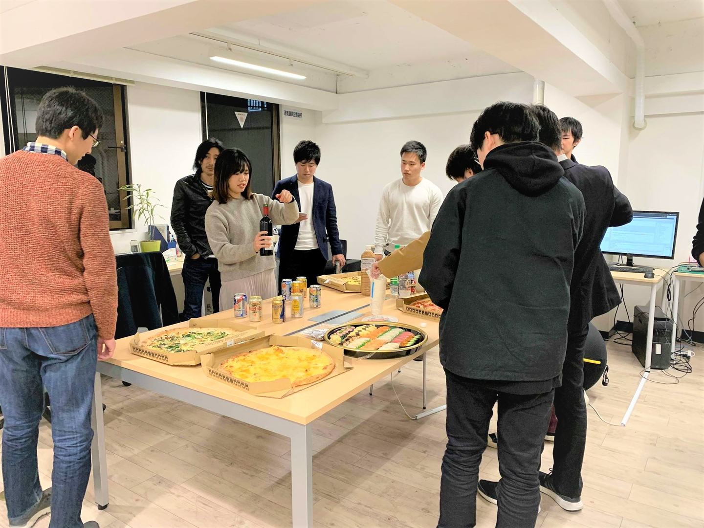 On December 7th, Hacarus held its first bonenkai for all interns, both current and incoming. Starting at 6pm, right after work, preparations for setting the table with wine, chuhai, sushi, pizza, and other finger foods took place. We had the opportunity to get to know one another through lightning talk and introductory powerpoint, an activity suggested by an intern. Everyone enthusiastically introduced themselves, although majorly in Japanese, some interns had put a lot of thoughtful effort to present their part with their slides in English. The whole event lasted until about 9pm with a whole lot of delicious food and shared laughs throughout the party.