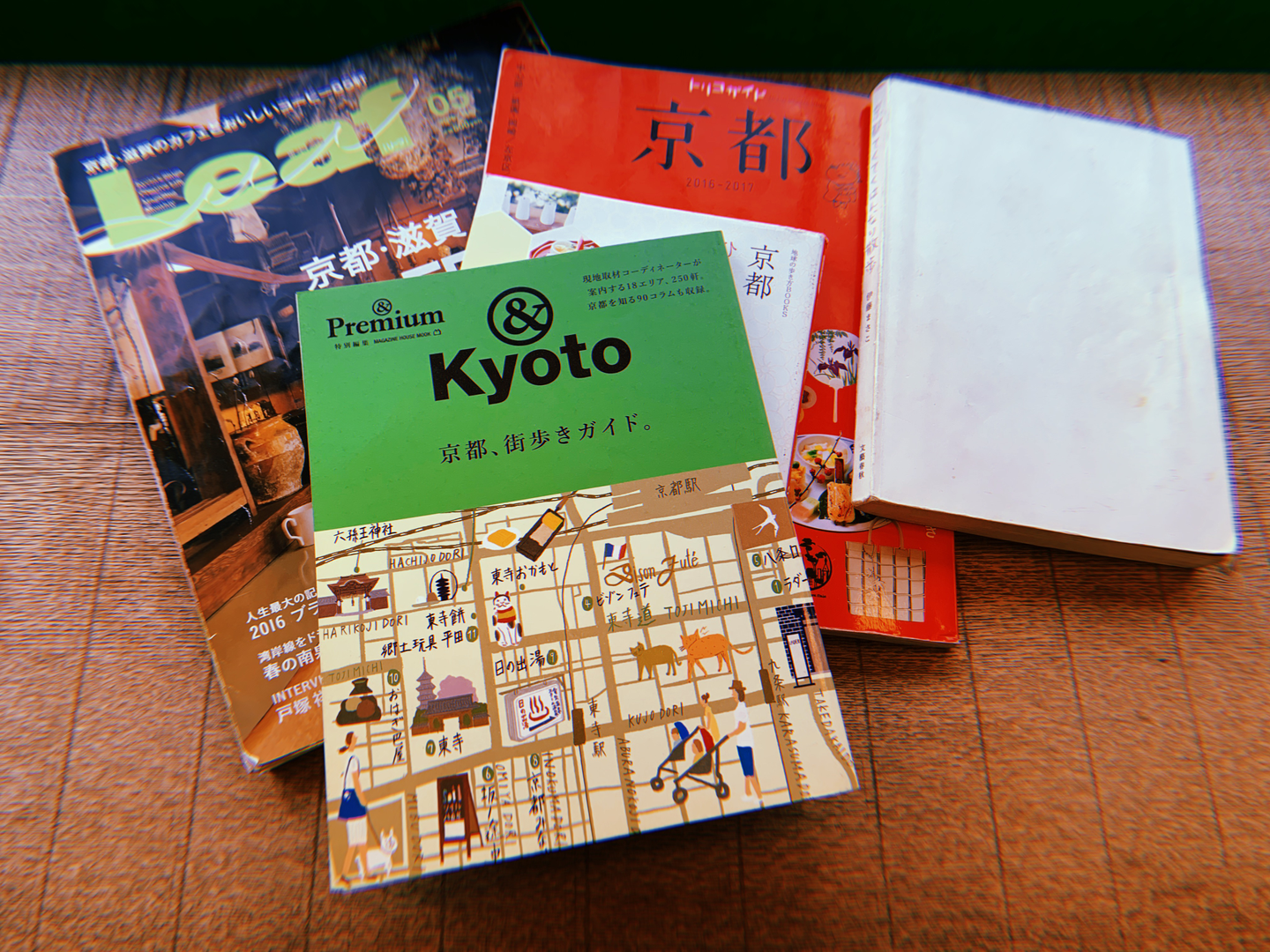 Kyoto travel guide books at a cafe