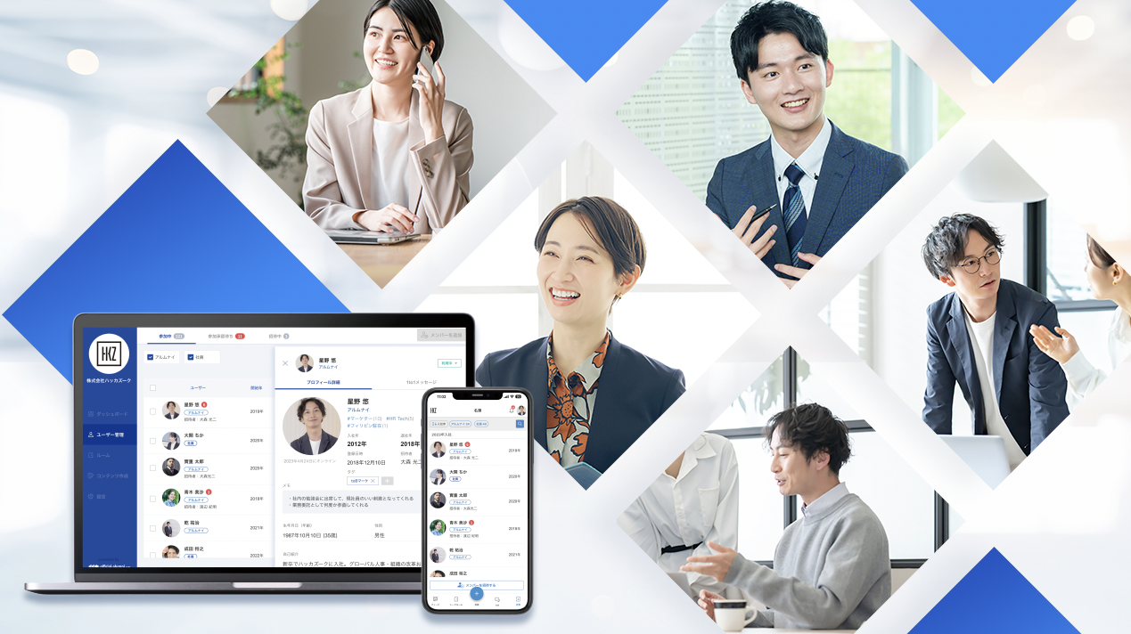 退職者(アルムナイと呼びます)と企業をつなぐネットワーク構築支援クラウド『Official-Alumni.com』を展開し、企業の人材戦略に新たな選択肢を提供しています。パソコンや携帯アプリでアクセス可能で、専用のシステム内でかつて在籍した企業や同僚とコミュニケーションを取ることができます。