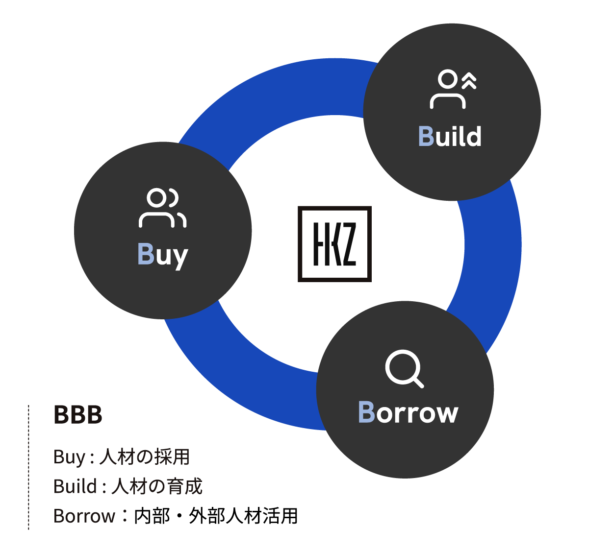そんな私たちのグループビジョンは「BBBのプラットフォームになる」です。BBBとは、Buy(人材の採用)/Build(人材の育成)/Borrow(外部・内部人材活用)のことです。この3つのアプローチで企業の成長戦略を人材という側面から支えるプラットフォーマーを目指しています。BBBについては説明が長くなりそうなので、詳しくは説明会などでお話出来ればと思います。