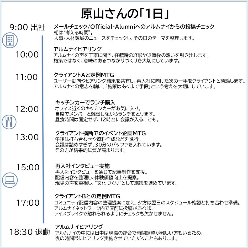 ではまず、原山さんがどのように1日を過ごしているのか、