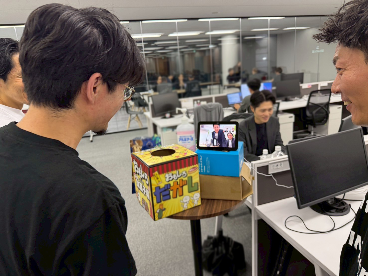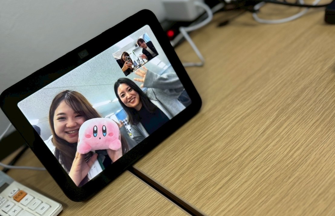 さて、社内のコミュニケーションの取り方にも変化がありました。東京オフィスとのリアル接点がないことを補うために、会話しやすい(話しかけやすい)工夫を入れました。東京オフィスと大阪オフィスを常時接続するシステムの導入です!
