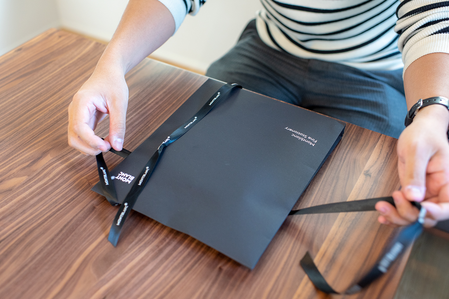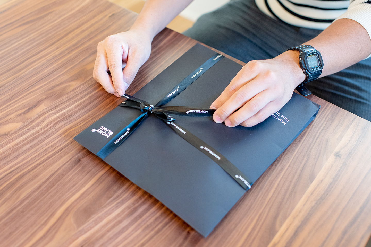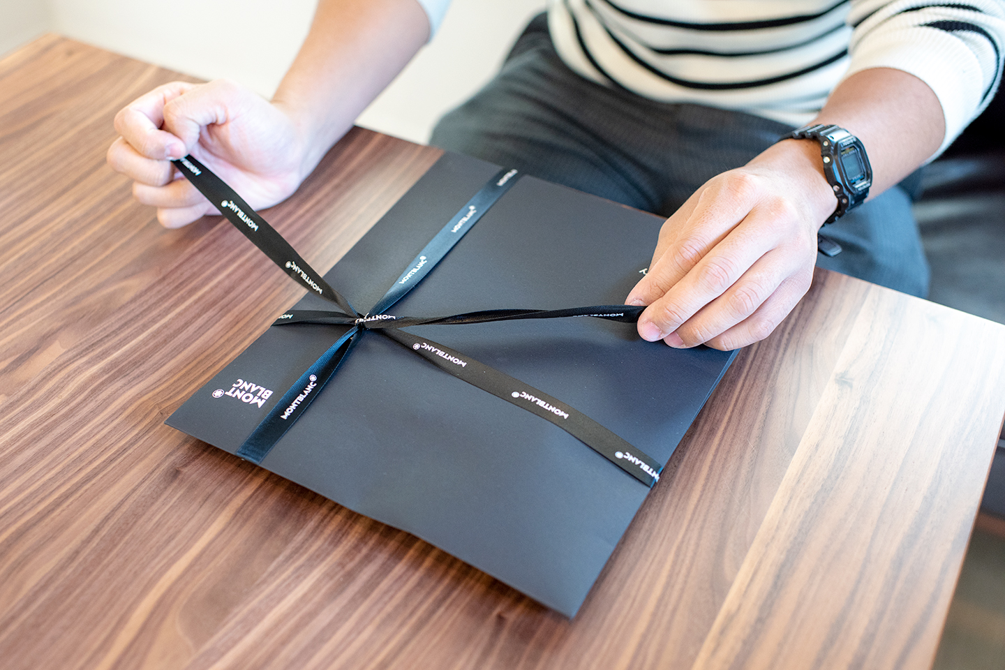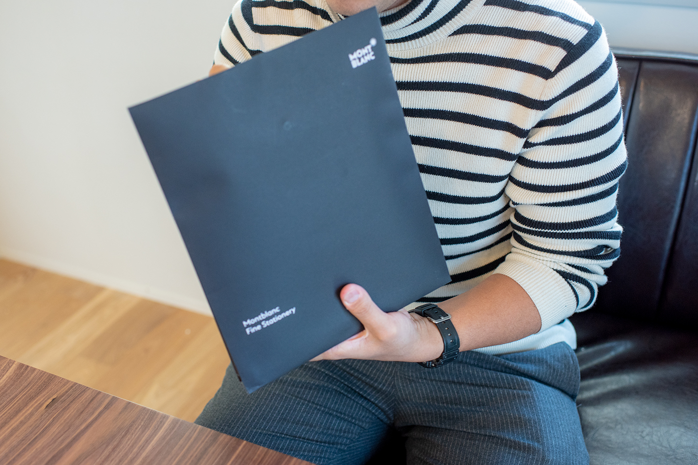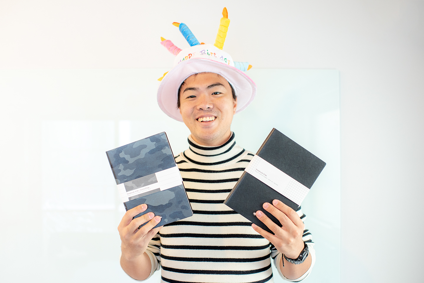 誕生日プレゼントとして、「勝倉君って手書きでよくメモをとっているよね。」ということで、‘’MONT BLANCのノート‘’をハッカズークからプレゼントしました!