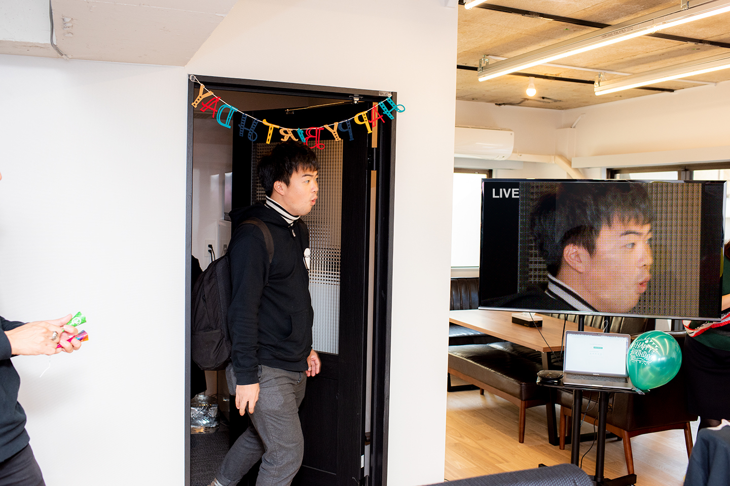今日はハッカズークインターン生の勝倉くんのお誕生日ということで、今月から新しくなったオフィスでバースデーサプライズを企画しました。