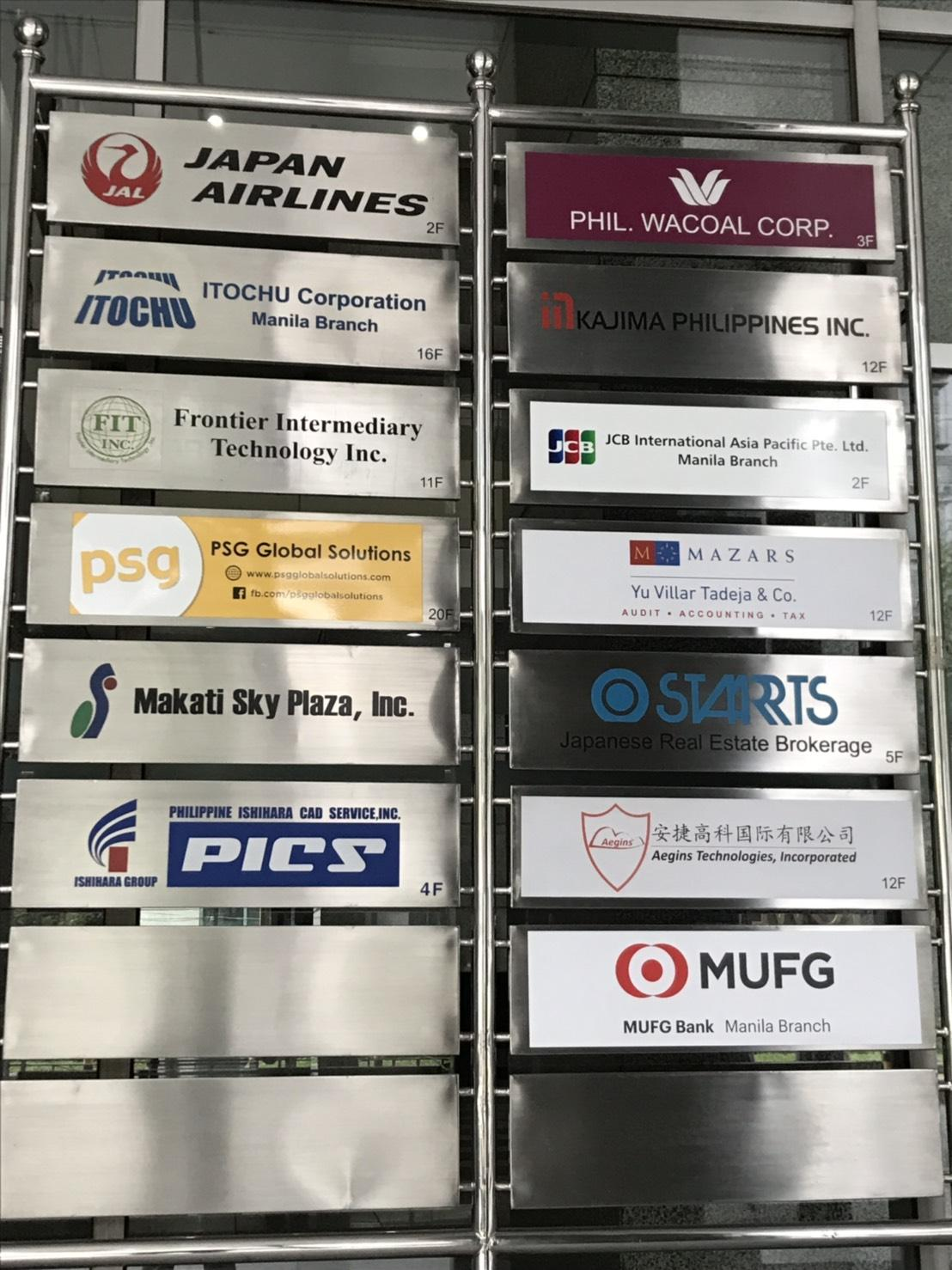 とあるビルを覗いてみると、たくさんの日系企業もマカティに集結していました。