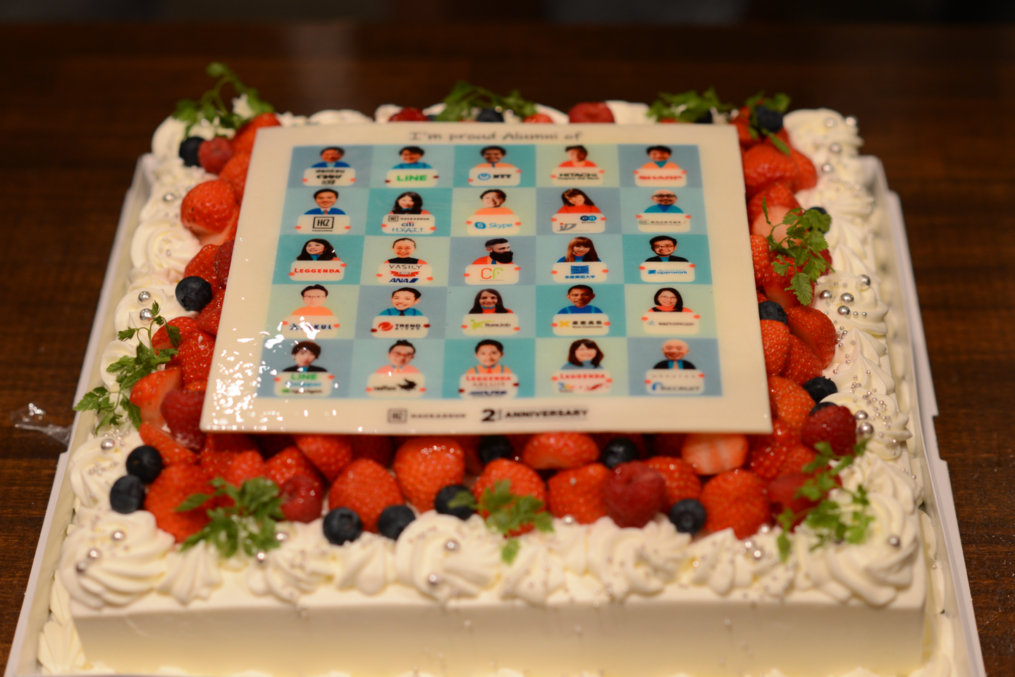 そこで、前職やお世話になった会社のロゴを手に持ち、「I’m proud Alumni of XX」を掲げるデザインをチョコレートにプリントしました。少々食べるのに気が引けましたが(苦笑)