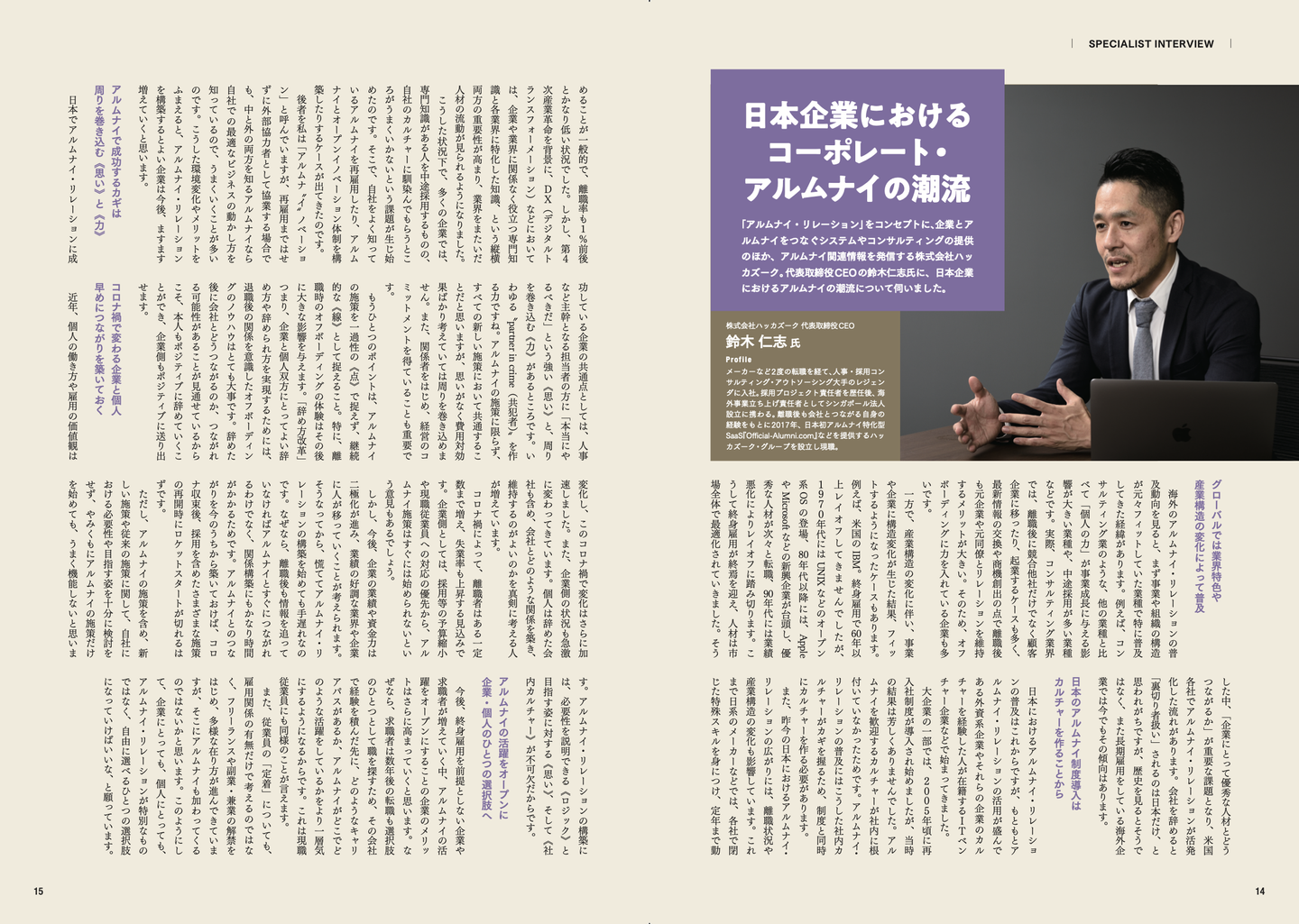 フルカラーで合計26ページにもわたるパーソルさんの機関誌が、丸々一冊全てアルムナイに関してってことなんです!!