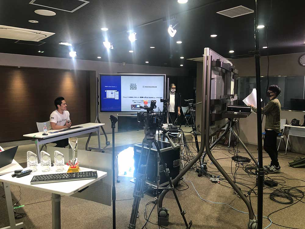 ハッカズークのプレゼンテーションはラストの4番目。オンライン開催なので会場には最低限の人しかいないものの、オンライン上では審査員と100名以上の方が視聴しています。緊張感が漂う中、鈴木のプレゼンが始まりました。