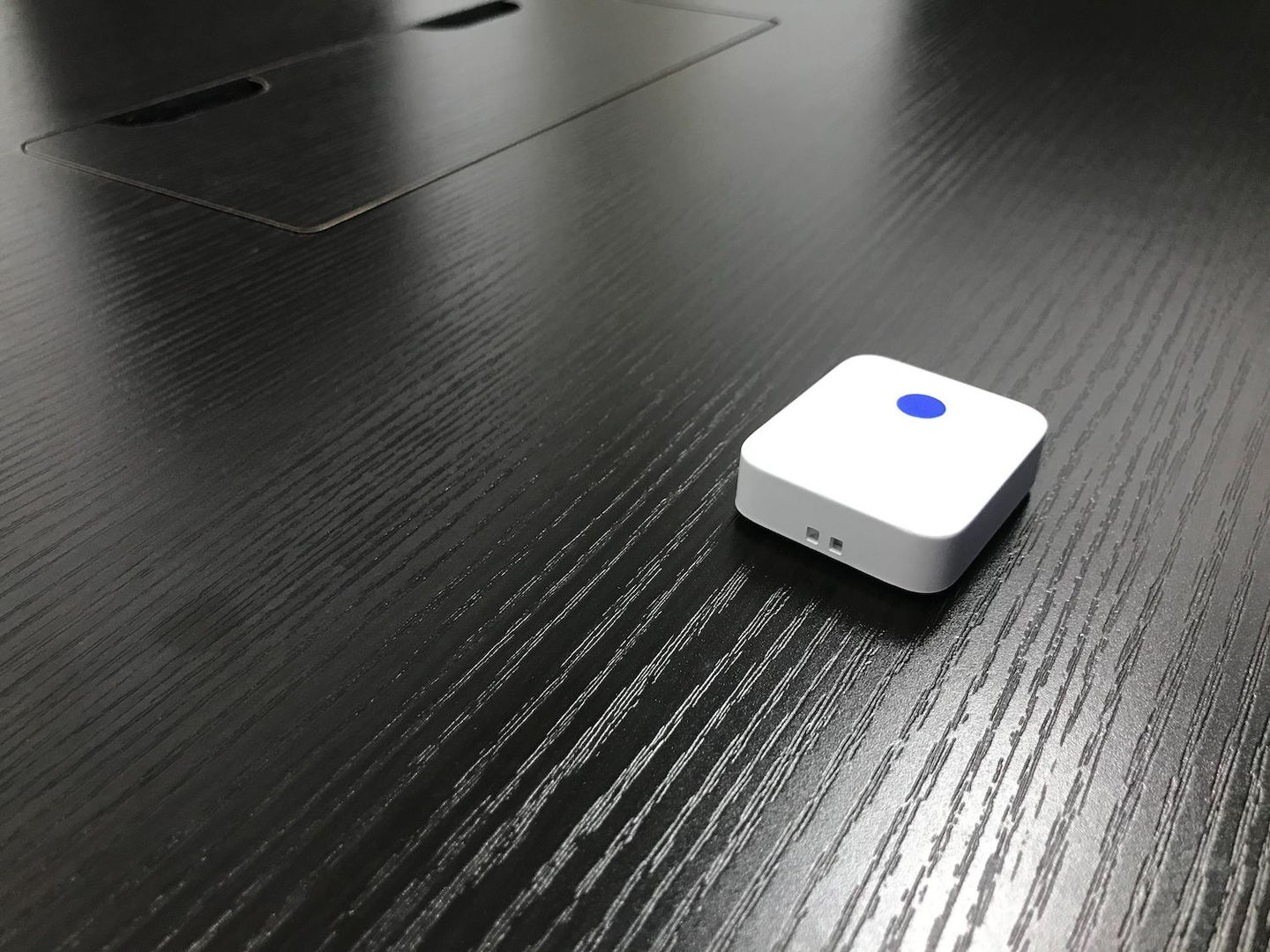 そしてこちらのスイッチ、会議室の照明のオン・オフができる優れものです。実は会議室の照明はスイッチがエントランスのドアを開けた裏側にあり、いちいち閉めなければ電気のオン・オフができませんでした。遠隔操作ができることでストレスは激減……!