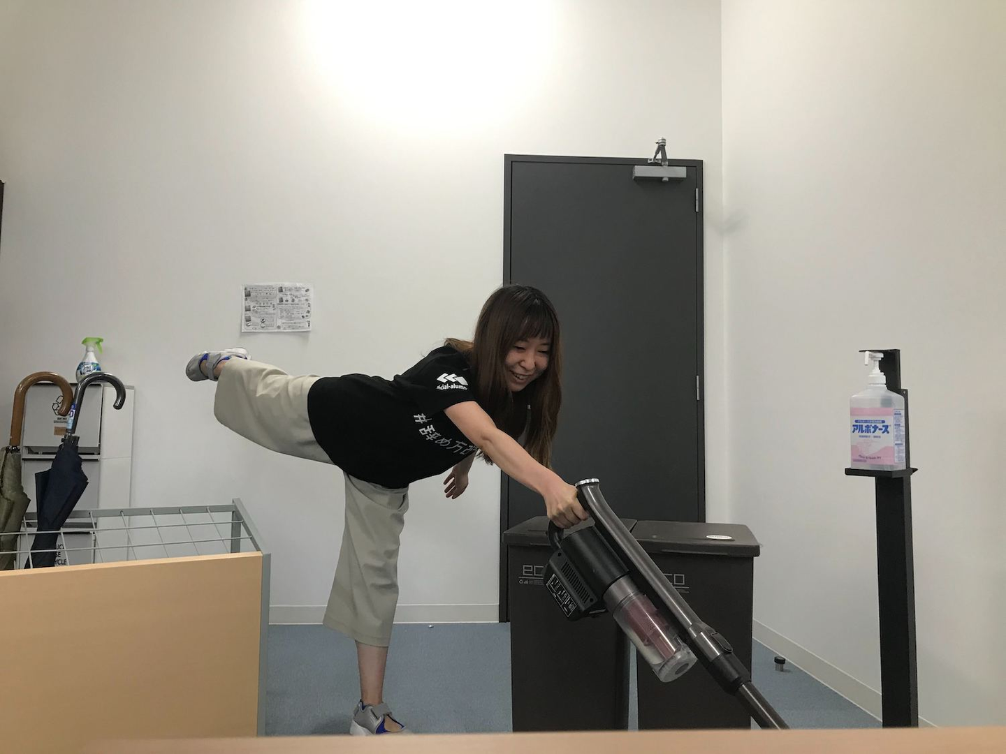 掃除機にゴミ箱、消毒液と消毒液スタンド、傘立てもいただきものです。オフィスに出入りするたびに消毒して感染症を対策し、毎週月曜日の朝にみんなで掃除をすることで衛生面はバッチリ。ゴミが隠れるタイプのゴミ箱で見た目もスッキリしました。ヨガインストラクターでもある三市はさすがのバランス。