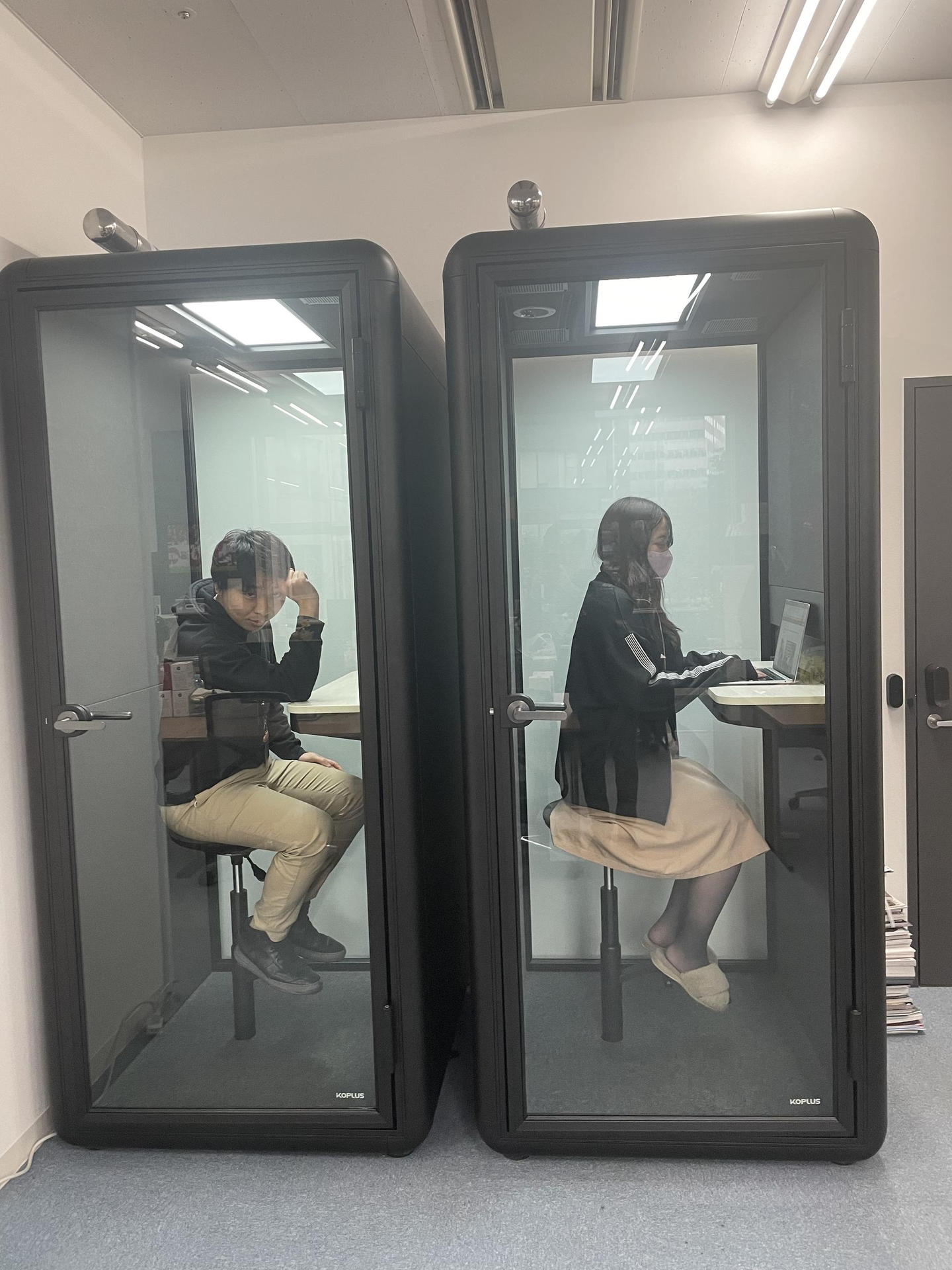 昨年各グループに多くのメンバーがジョインし、打ち合わせスペースが足りなくなってきたので、フォンブースが仲間入りしました!!