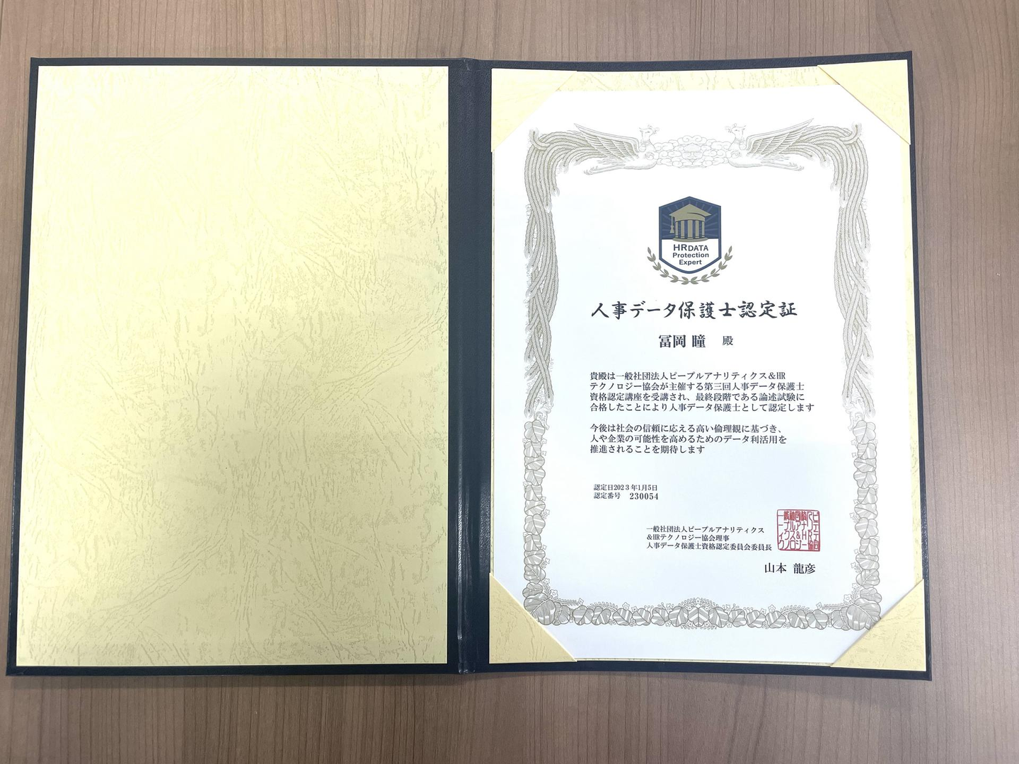 今日は先日みんなで取得した人事データ保護士資格の認定証が届いたのでご紹介します!