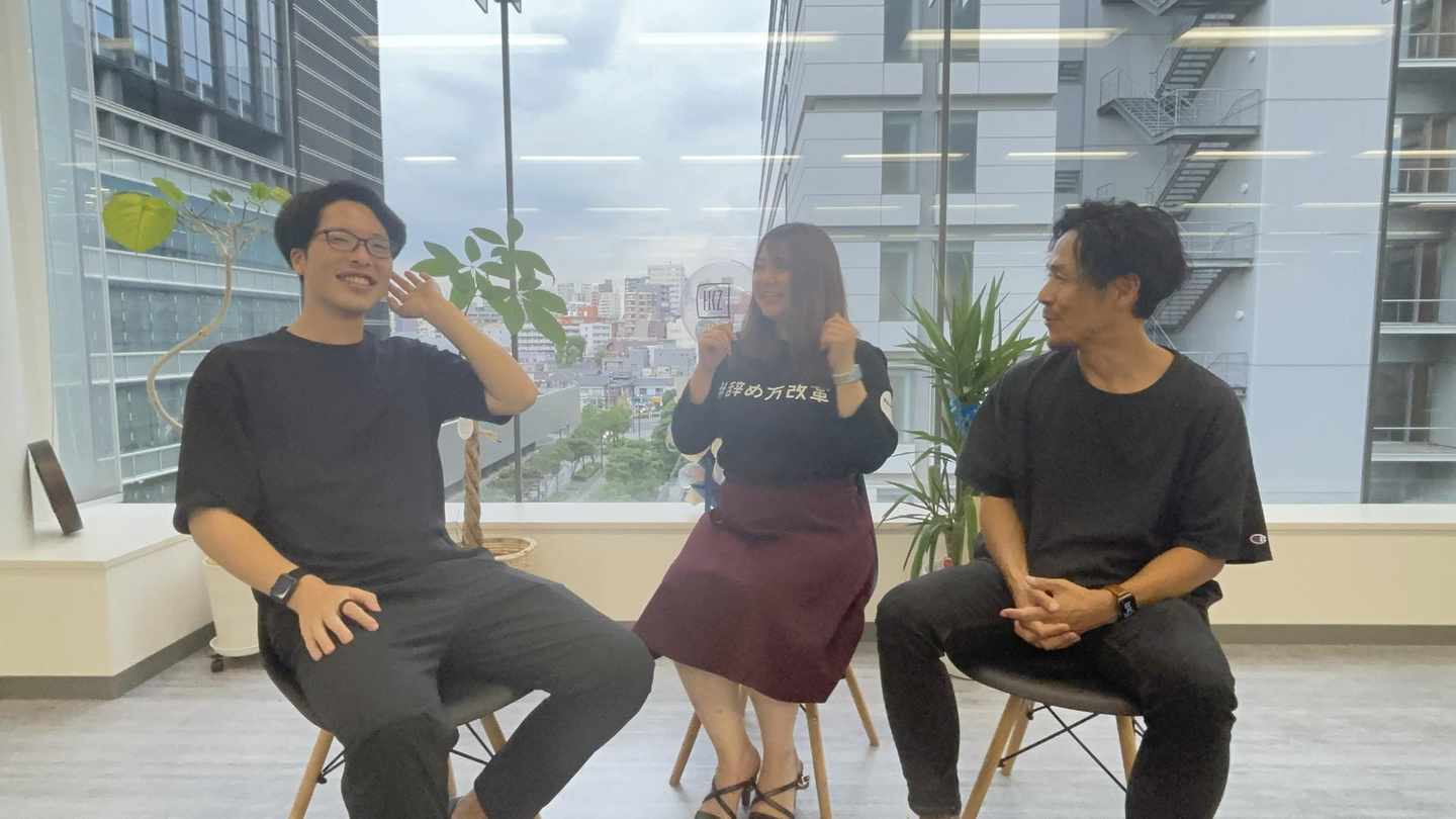 掲載にあたり、代表鈴木、セールス冨岡、アルムナイ・リレーションシップ・パートナー(以下、ARP)仲田の3人で求人掲載用の動画撮影を行いました!