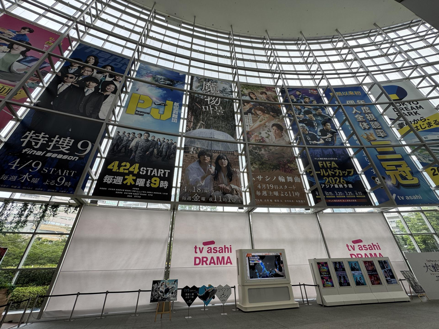 スタジオ到着!入り口ではドラマやサッカー日本代表の垂れ幕がずらり。テンションが一気に上がります!