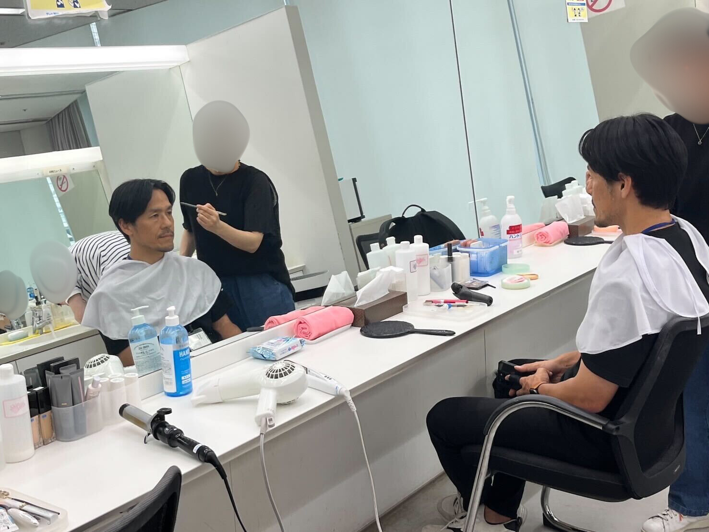 すぐにヘアメイクへ!プロの手によって整えてもらいます。ぱたぱた…