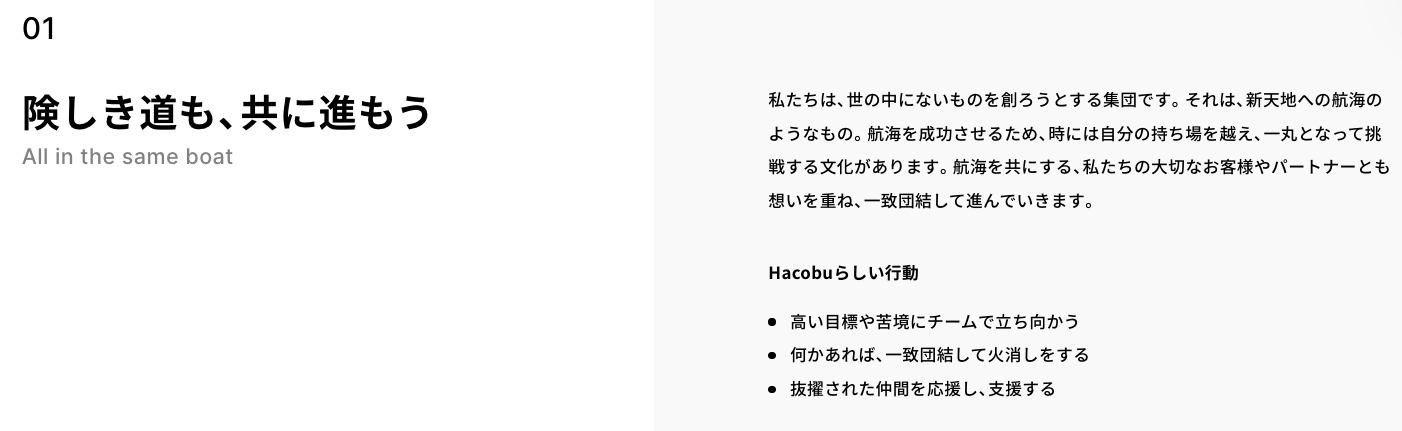 (*)All in the same boat(険しき道も、共に進もう):Hacobuの7valuesの一つ。