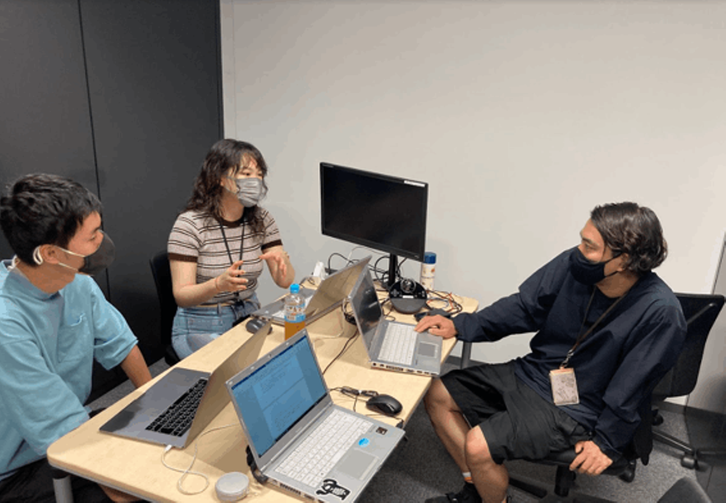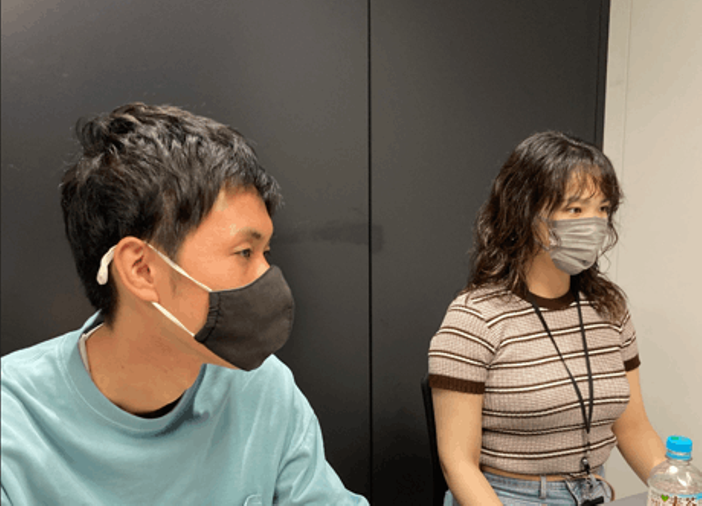 臼井(うすい):デジタルインテグレーション課に所属。プログラミングや電子工作、映像制作等を用い、インタラクティブコンテンツやインスタレーションの開発等を担当している。趣味はダイビング。熱海伊豆近辺によく出没する。渡邉(わたなべ):マーケティング部に所属。現在はオンラインセミナーなど、社外に向けたコンテンツ企画を担当している。動物の写真を撮ることやゲームが趣味。最近のおすすめはCoffee Talk。