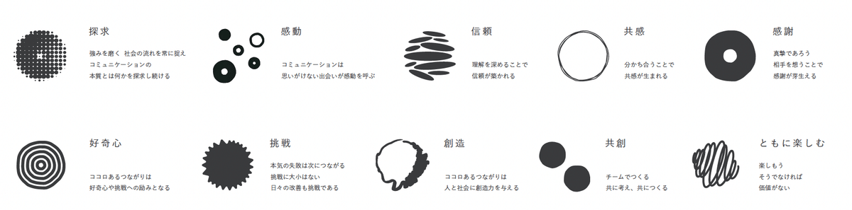 “Hakuten mind dot” のさまざまなカタチは、博展で働く「人」の価値観を表現しています。