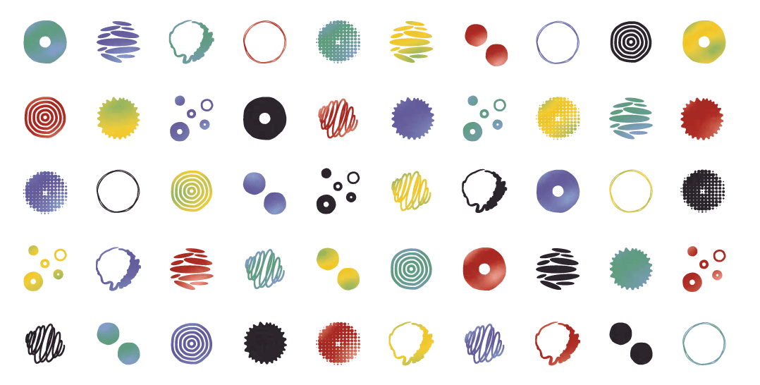 そのような博展で働く「人」が持つ価値観を10種類のカタチと5つのカラーに込め、Visual Identity “Hakuten mind dot” として表現しました。