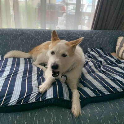 14時、業務開始です。犬を愛でながら。
