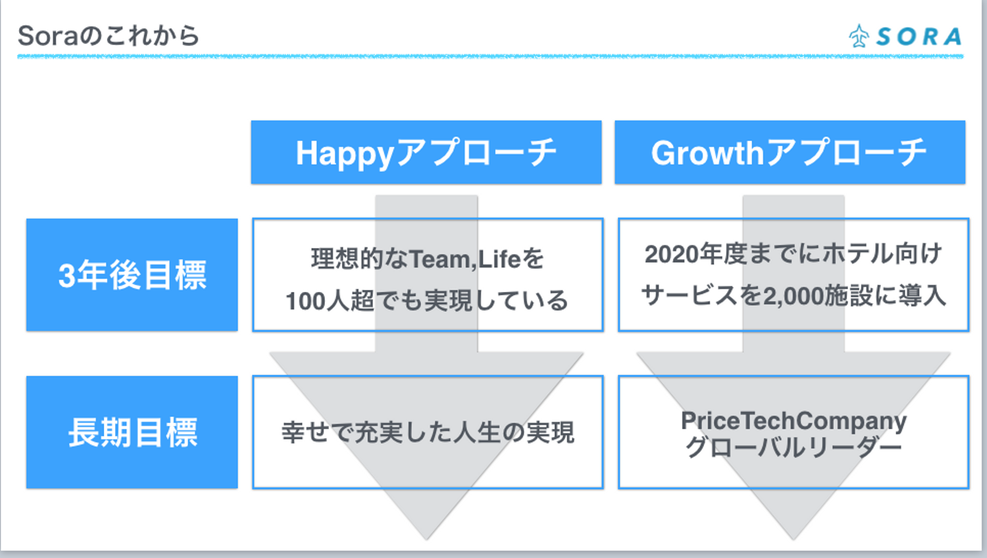 『Happy Growth』の実現に向けて、より加速度的に空に関わる皆様のHappyと空の事業のGrowthを実現させていきます。そして長期的には『幸せで充実した人生の実現』と『PriceTechCompanyグローバルリーダー』を必ず実現させてみせます。また今後空がそんな立ち位置になっていく上でどんな組織を目指しているかについては別途ブログにてお伝えさせて頂きたいと思っておりますので、そちらもご一読いただけると幸いです。