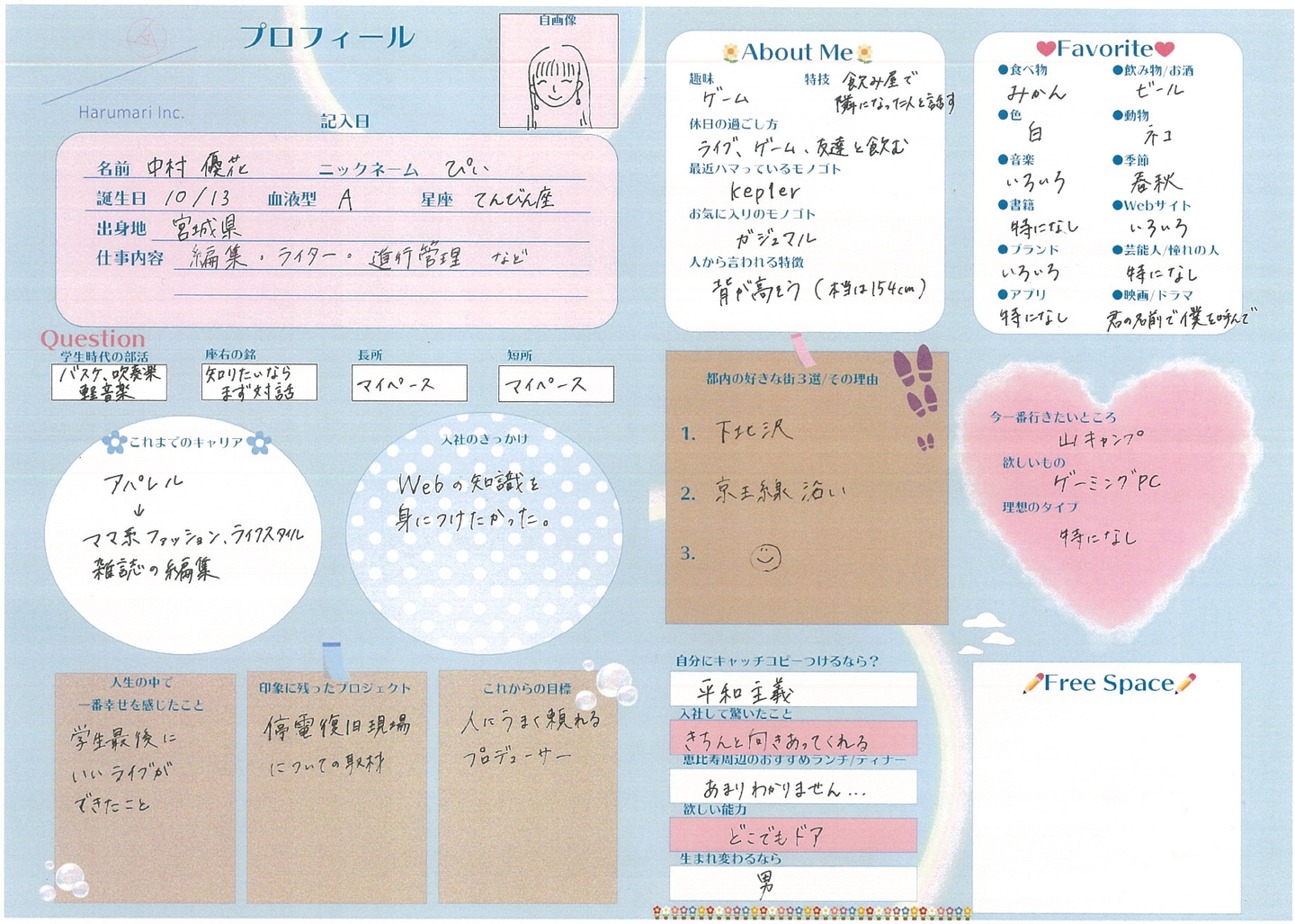 中村さんの目標に「人にうまく頼れるプロデューサー」とあるように、個人ではなく、チーム一丸となってプロジェクトを進めていくことが大切です。スケジュール通りに進める計画性、チームメンバーを管理する力、クライアントとの調整力……などハルマリに入社することで社会人としても、ひとりの人間としてもさまざまな力が身につくと感じます。