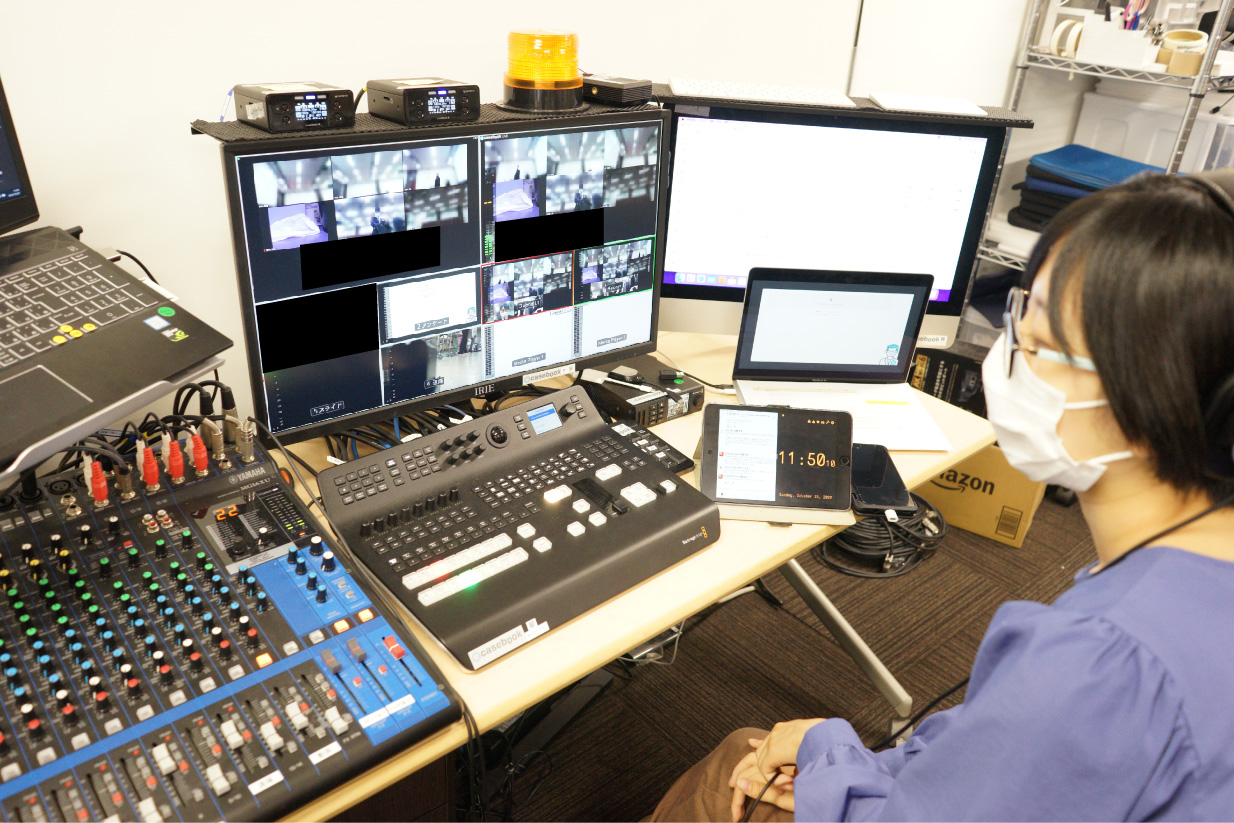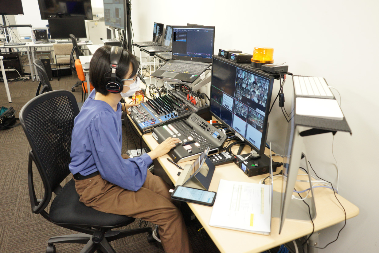 ほぼ毎日開催されるライブ配信を少ないメンバーで行うため、効率化をとても重視しています。それと同時に丁寧さも重視しています。ライブ配信をやって終わりにするのではなく、ちょっとでも良くない部分を見つけたら、映像部部長・長尾さんに何か対処法がないのか相談して、次に向けてよりよいライブ配信ができるように心がけています。