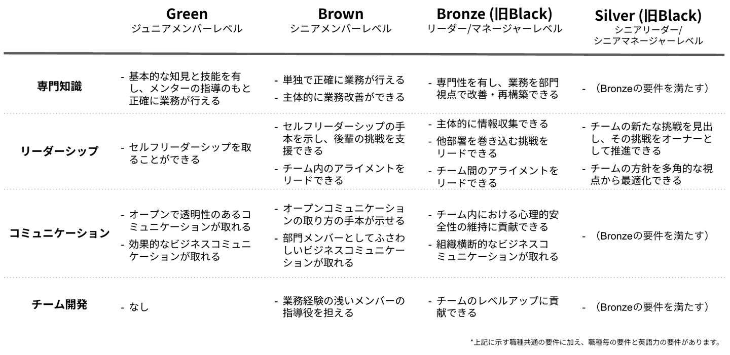 ※新卒入社すると能力要件のないWhiteベルトからのスタートになります。