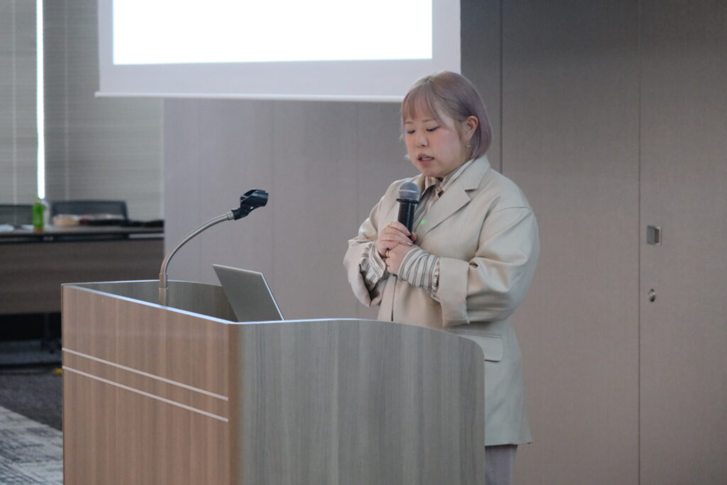 広々とした空間での発表は緊張します!