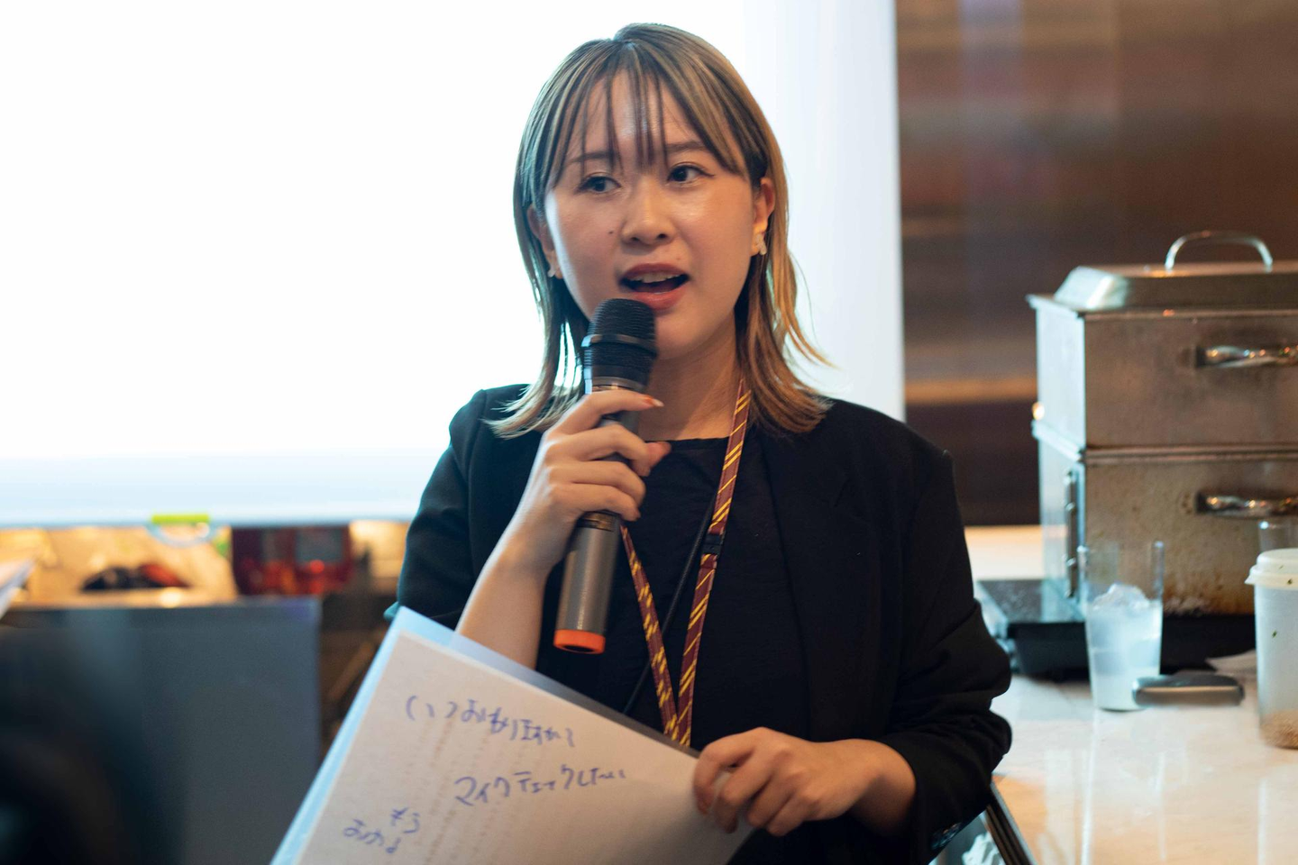 会社説明をしながら持っていた紙の裏に「いつおわりますか?マイクチェックしたい」という走り書きがあり、バッチリ写真に収められておりとても恥ずかしかったです。