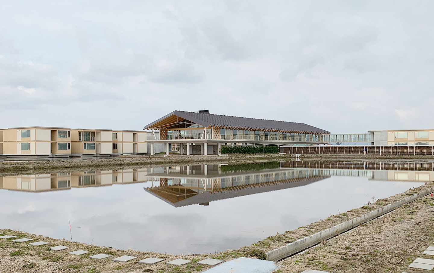 スイデンテラスを設計したのは、建築会のノーベル賞と評されるプリツカー賞を受賞した世界的建築家の坂茂さん。水田を活かす美しい建築、木造ならではの温もりや、紙管を使用したベッドボードや椅子など、シンプルかつ洗練された印象を受けました。