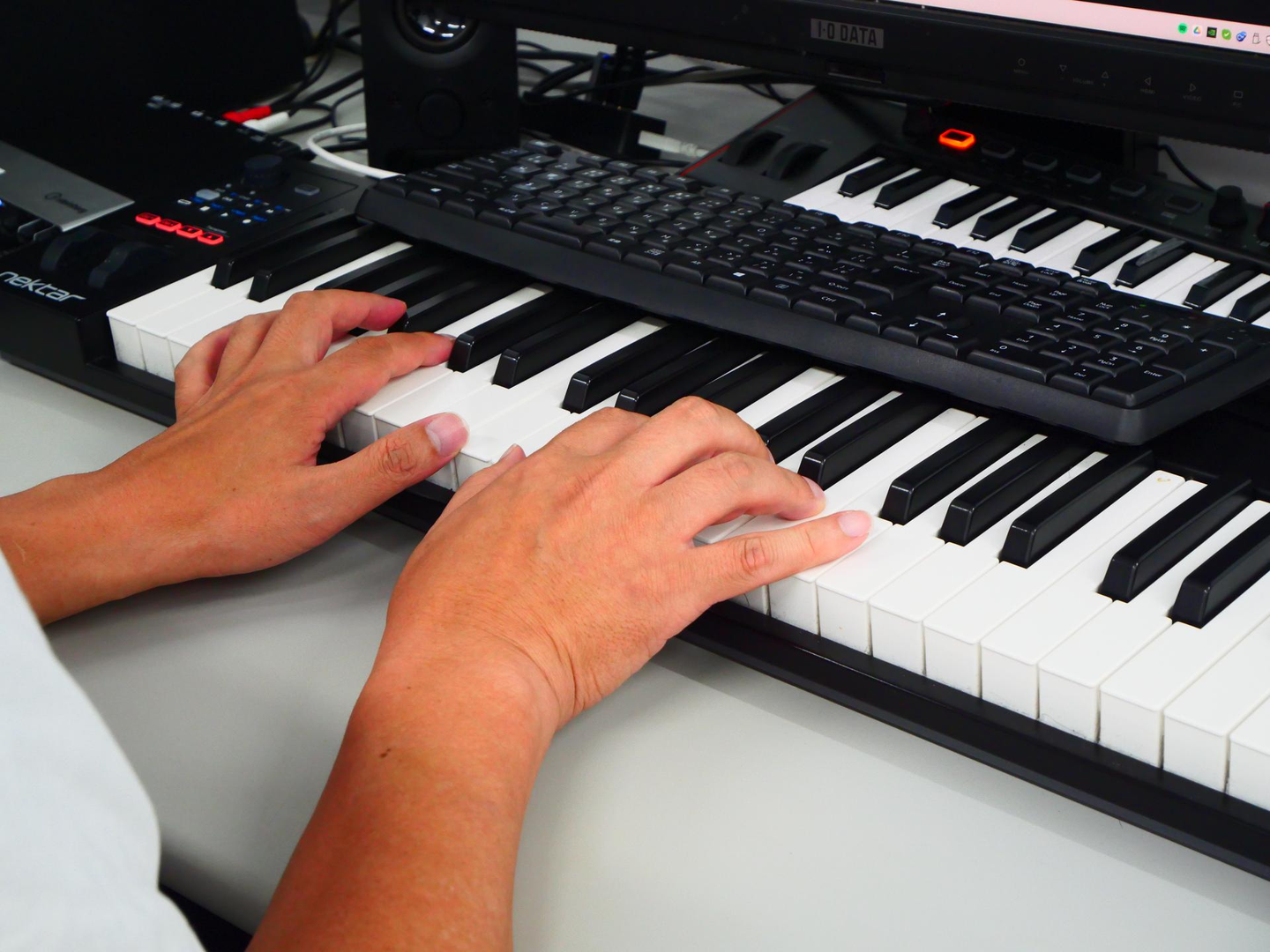 オフィスの中に専用の部屋が設けられており、その中ではさまざまな機材を使用し、作品の世界観を彩る音楽が制作されています。