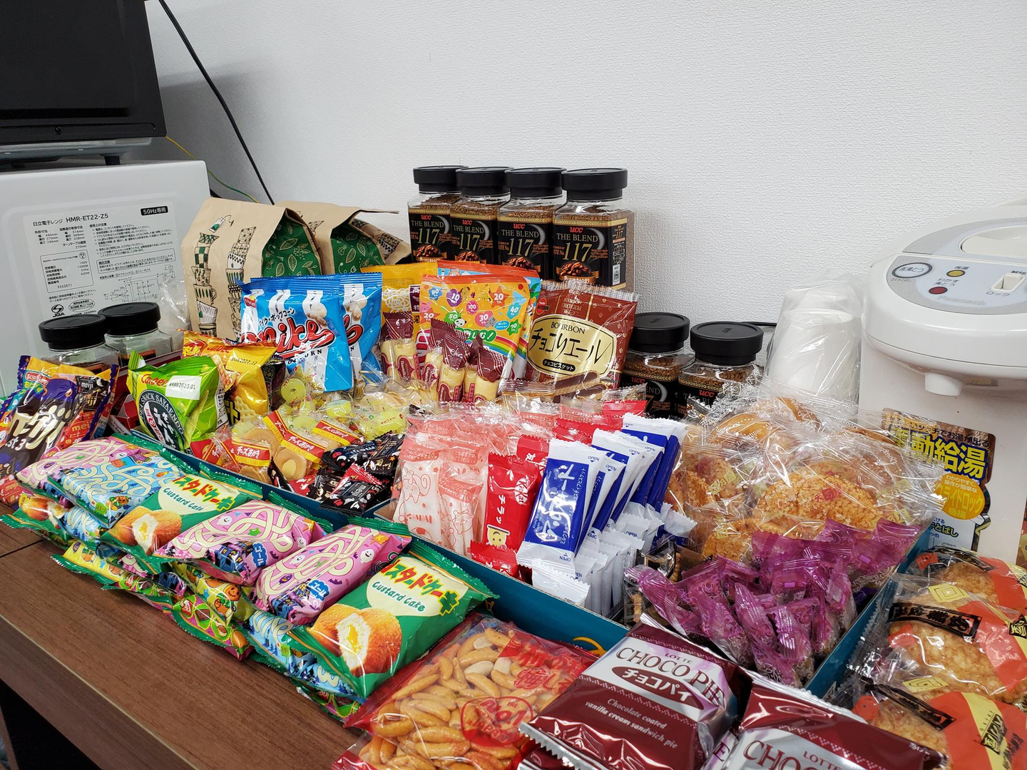 お菓子・飲み物コーナーが用意してあり、ちょっと小腹がすいたときや、