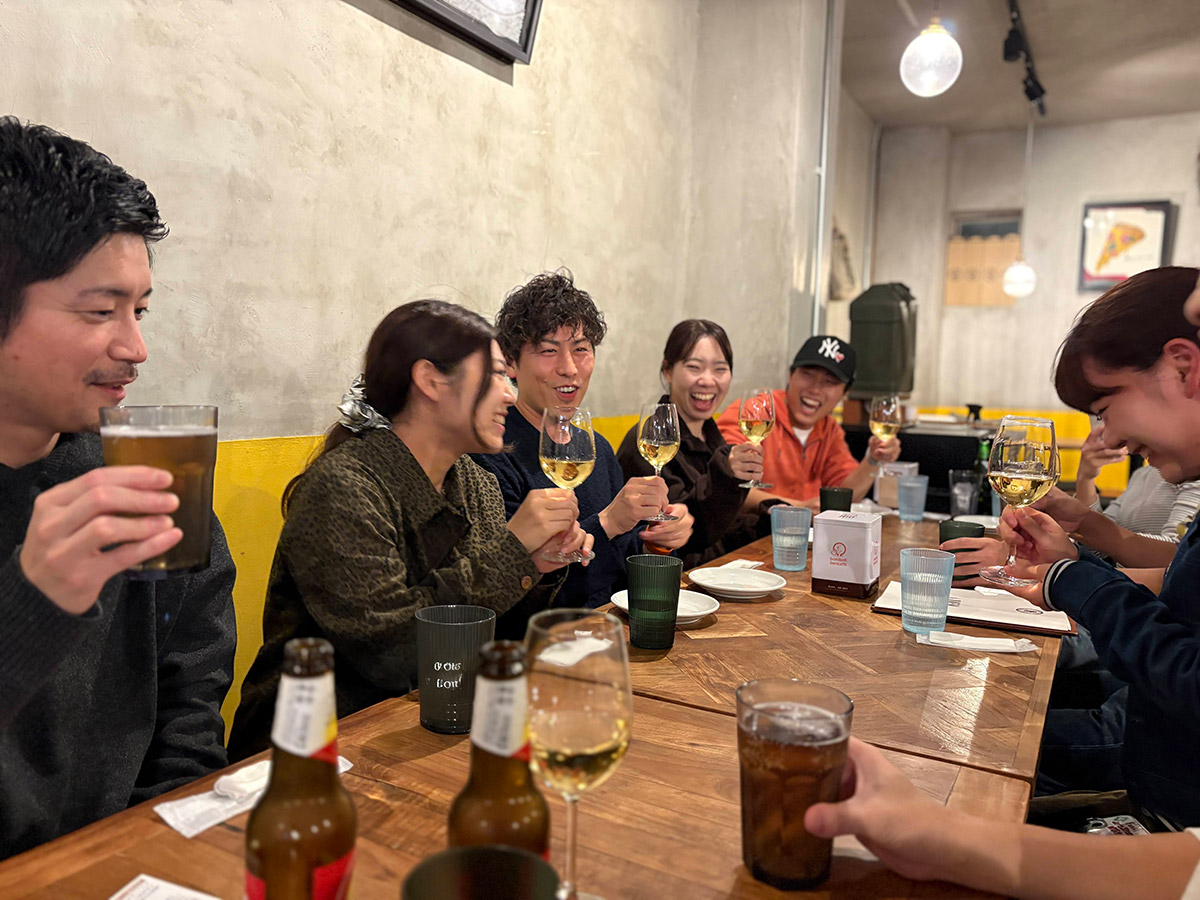 夜は、先ほどお話を伺ったIROHA CRAFTの長田さんも施工で関わっていたというピザ屋「SEI OTTO」さんで乾杯。イタリアから輸入されたという本格的なピザ窯で作られたピザの香ばしさはもちろん、目にも鮮やかな多彩な前菜も絶品でした!🍕