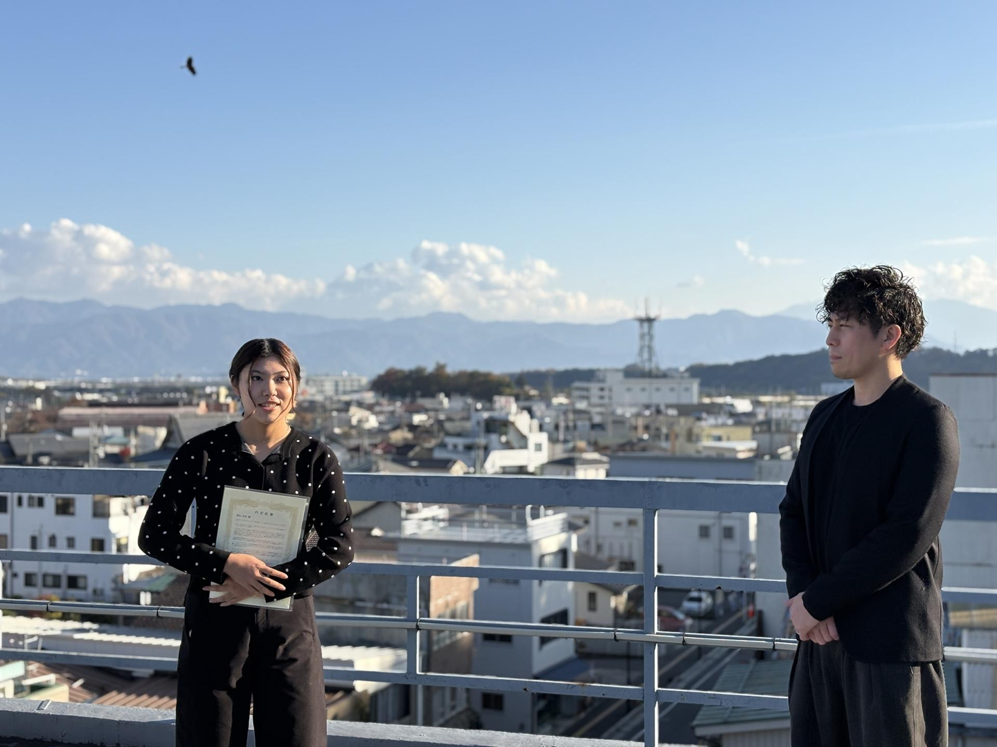 今回の合宿のメインイベント!内定証書授与式は、アメリカヤの屋上で晴れやかに実施されました。