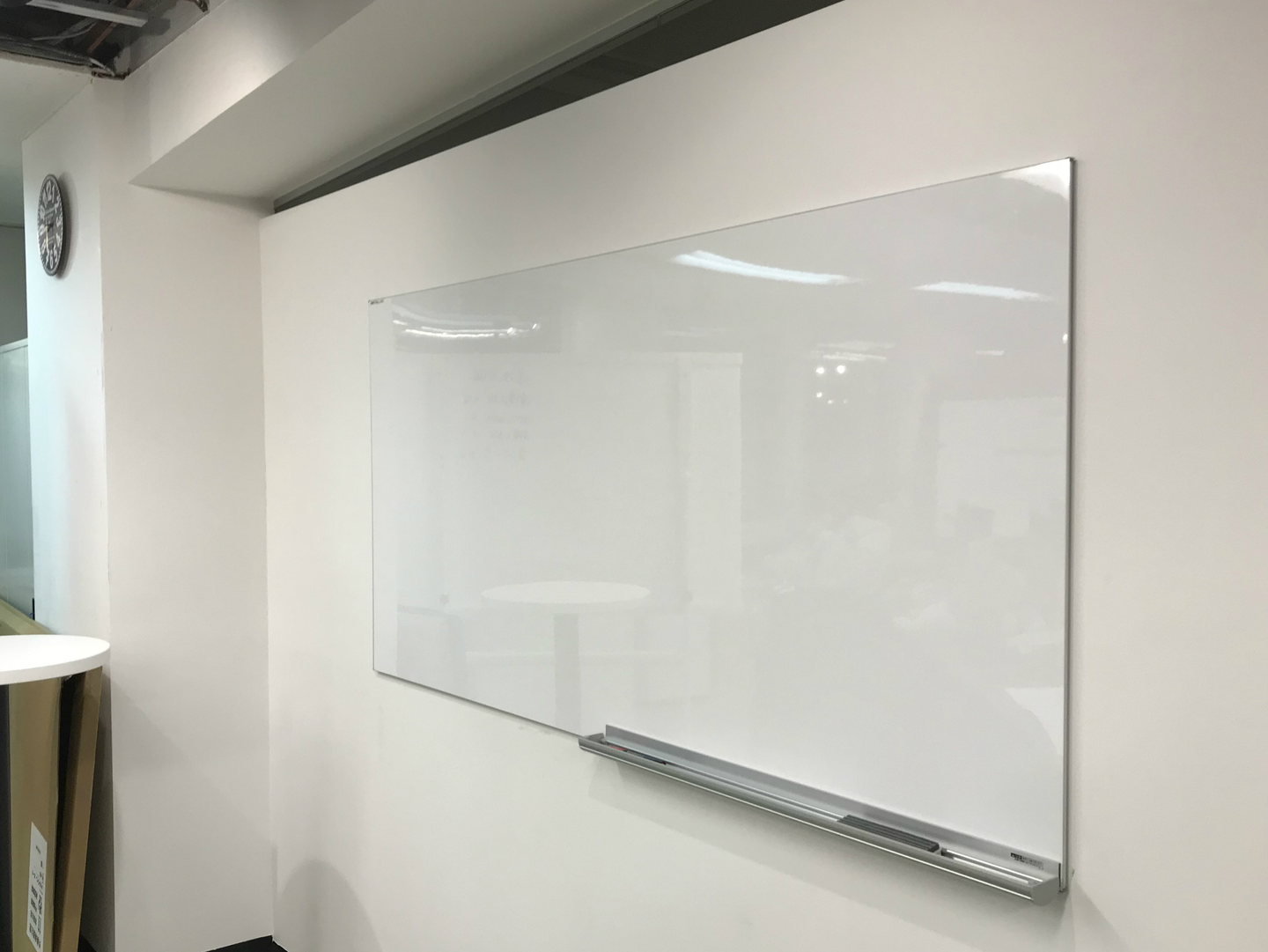 先日、オフィスのレイアウト変更に伴い壁を1つ壊してホワイトボードが無くなってしまったので、メンバーが1時間くらいかけてチャチャっと新しい場所にホワイトボードを取り付けてくれました◎