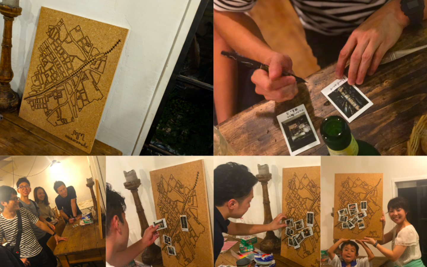 会場に到着した後は、手作りのコルクボードの地図に写真を貼り、オリジナルボードの完成!中目黒に一段と親しみがわき、移転へのモチベーションもアップ!