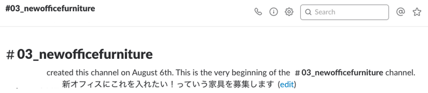社内のチャットツール・slackでは、「#newoffice」「#newoffice_planning」「#newoffice_furniture」といったチャンネルが立ち上がり、「あんな家具が欲しい!」「こんなスペースどうだろう?」なんて会話が繰り広げられています♪