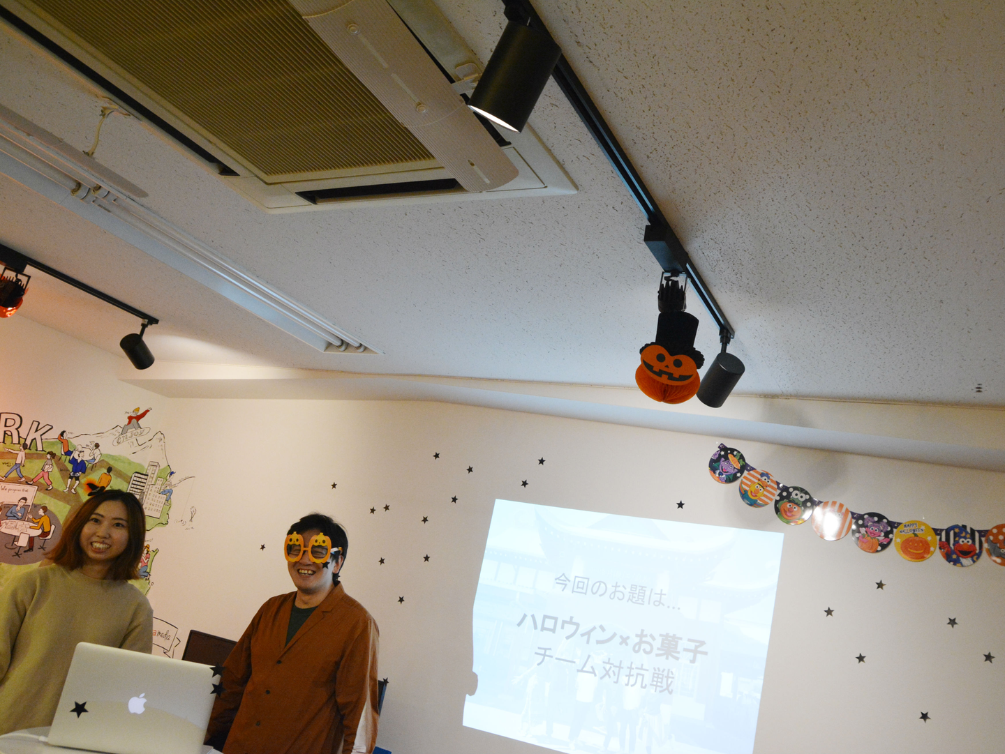 第3回目の担当事業部は、プランニング事業部!10月ということもあり、テーマは「ハロウィン」!主催メンバーたちは仮装しました♪会場のライトもカラーセロファンを貼って雰囲気たっぷりです。