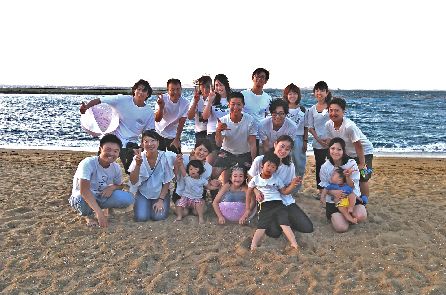 夏といえば海!BBQ!ということで、砂浜であめ玉探しや2人1組でビーチボールを背中に挟むリレー形式のレクリエーションを行った後、BBQとチーム代表がお題に対して回答する内容をチームで当てるというゲームコンテンツを行い、内容盛りだくさんのHosty Famimly Partyとなりました!