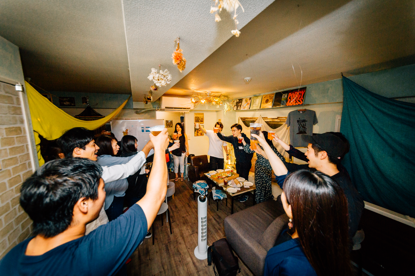Hostyで働くメンバーはもちろんのこと、そのメンバーの家族(お子さん、パートナー、姉妹など)を招待し、みんなで親睦を深めていこう!という会です。今回のPartyでは、全社合宿に参加したメンバーの他、ホテルフロント、クリーニング、ラウンドメンバーも加わり大賑わいでした!