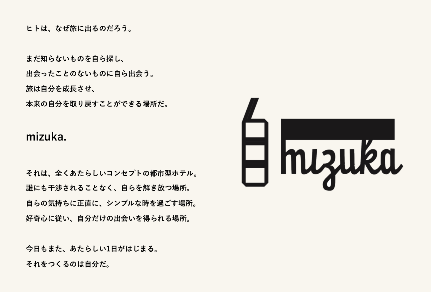 わたしたちは、それを可能とする自分型ホテル『mizuka』を世界中に展開していきます。