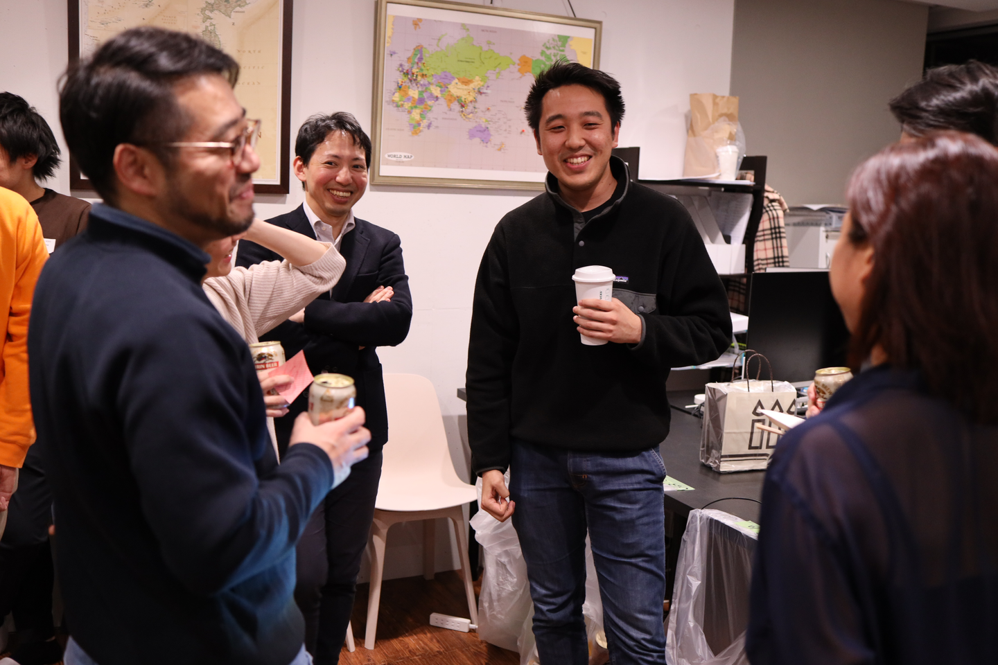 ゲストには日頃からお世話になっているKDDI事業戦略本部の方々、日頃Hostyに協力してくださっている方々、Hostyメンバーの前職の同僚や知り合いの方、純粋にHostyに興味を持ってくれている方などなど約30名の方にお集まりいただきました。会場は話が絶えない空間でした。それもそのはずです。お越しいただいたゲストは、大手外資系企業の日本法人立ち上げメンバー、スタートアップでCTOやエンジニアとして活躍されている方々、自分で会社を経営されている方々など様々な経験を積んでいる方々です。聞こえてくる会話は聞き慣れない言葉ばかり。でも最終的には、「お開きです。帰ってください!!」というまでずっと話されていたので、やっぱりこういうイベントって話してもネタが尽きないんだなという新たな発見がありました。そんなワイワイガヤガヤした空間ですが、新しいビジネスの種がきっとあるのでいろんなお話ししたいよって方、次の機会は気軽に参加してみてくださいね。